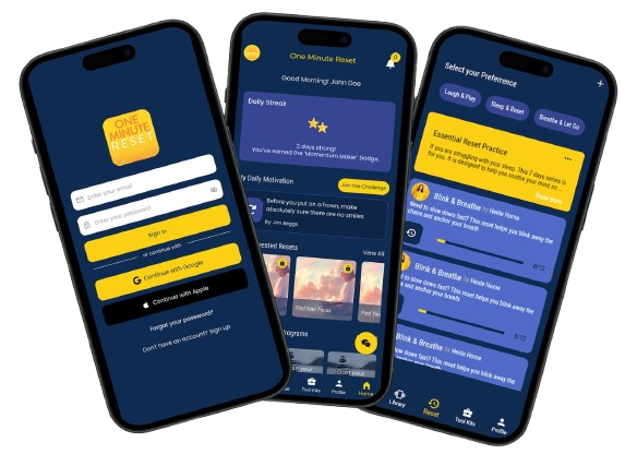 One-Minute Reset app gives you ways to take a minute to reset yourself.